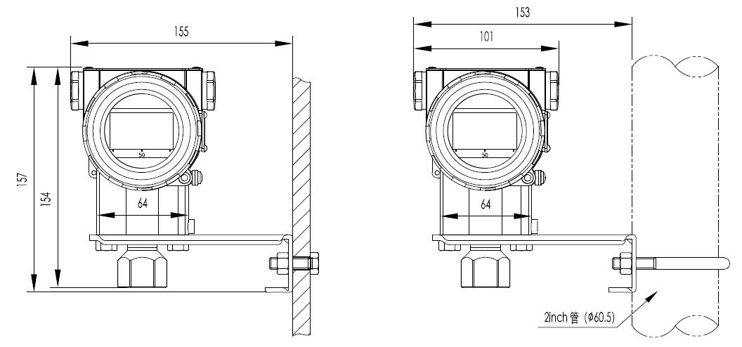 與膜片面平行方向的安裝位置變化不會造成零漂影響,若安裝位置與膜片面超過90°的變化,量程C有<0.25kPa范圍內(nèi)的零位漂移,其它量程有<0.15kPa范圍內(nèi)的零位影響,均可以通過調(diào)節(jié)調(diào)零校正。無量程影響。